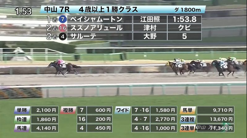 ◎ペイシャムートン(8人気)1着 単勝2,100円、複勝600円