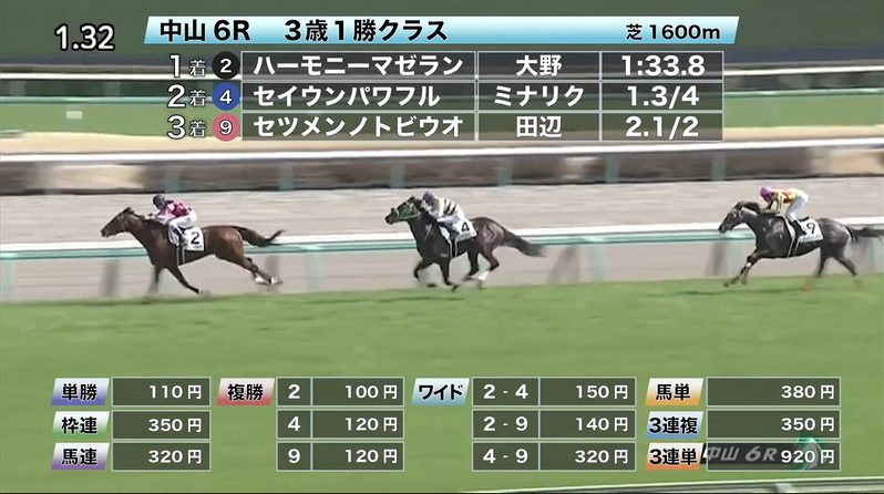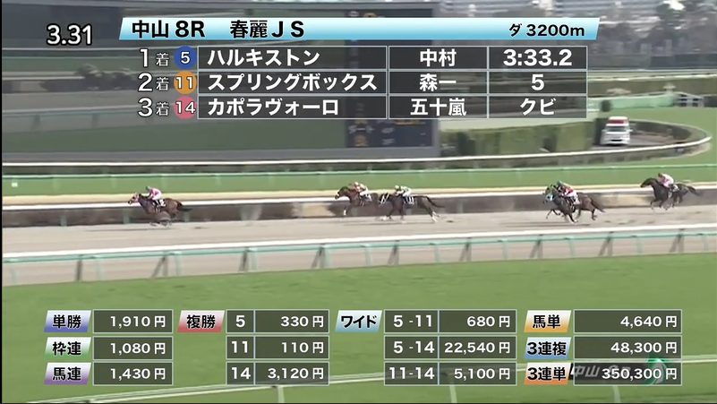 ◎ハルキストン(7人気)1着 単勝1,910円、複勝330円 - 2/29【中山9R】デイジー賞