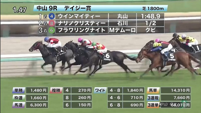 ◎ウインマイティー(6人気)1着 単勝1,480円、複勝270円 - 2/29【中山11R】サンシャインステークス