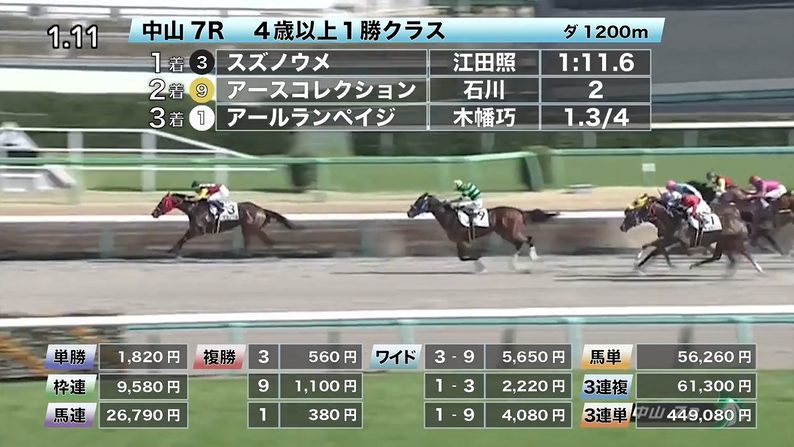 | 3/1 中山 | 12R | 9R | 75.0% |