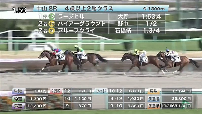 ◎ハルキストン(7人気)1着 単勝1,910円、複勝330円