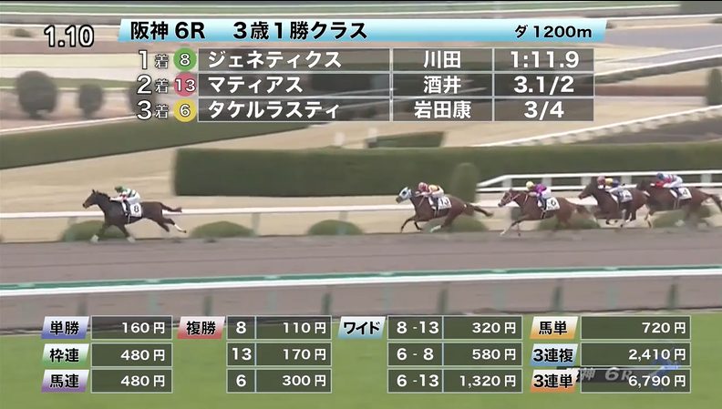 ◎ウインマイティー(6人気)1着 単勝1,480円、複勝270円