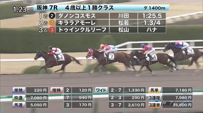 ◎アルマフォルト(7人気)1着 単勝2,080円、複勝560円 - 3/1【阪神9R】伊丹ステークス