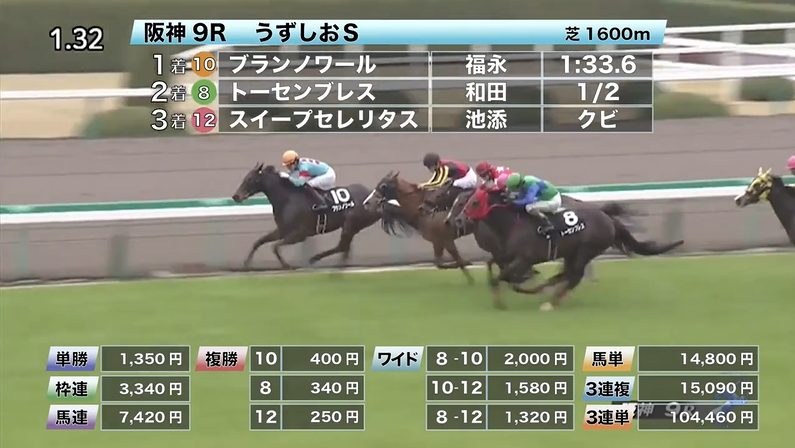 ◎トーセンブレス(9人気)2着 複勝340円 - 2/29【阪神10R】マーガレットステークス