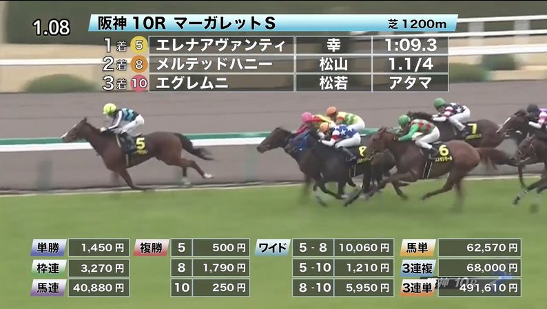 ◎エレナアヴァンティ(7人気)1着 単勝1,450円、複勝500円