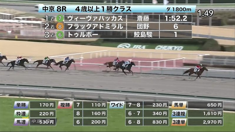 ◎ヴァルキュリア(3人気)1着 単勝590円、複勝180円