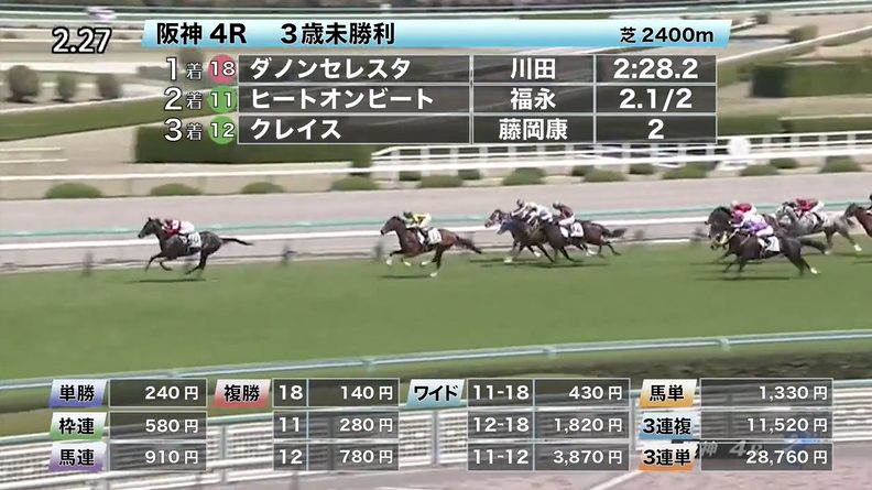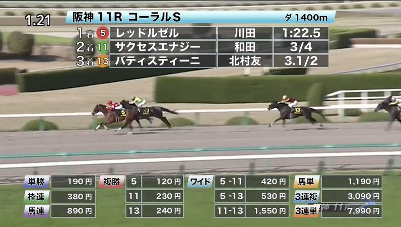 ◎エイシンルカーノ(10人気)2着 複勝910円 - 4/4【阪神11R】コーラルステークス