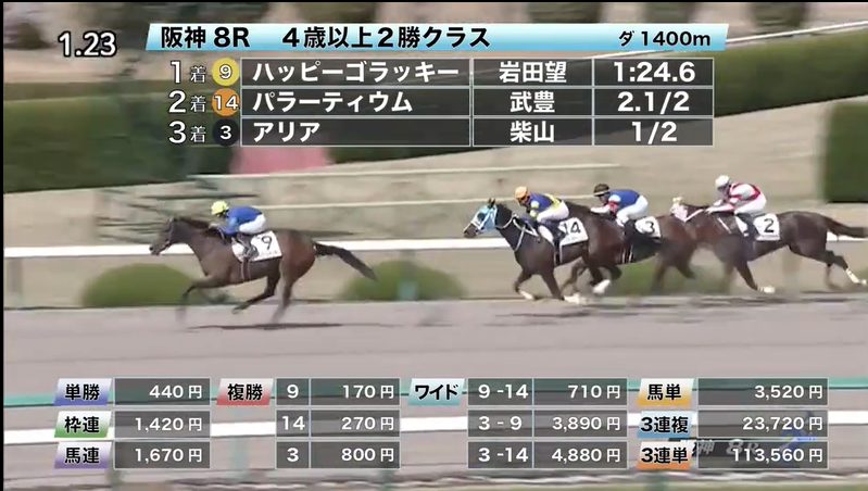 ◎ロッキーサンダー(8人気)3着 複勝280円 - 4/5【阪神8R】4歳以上2勝クラス