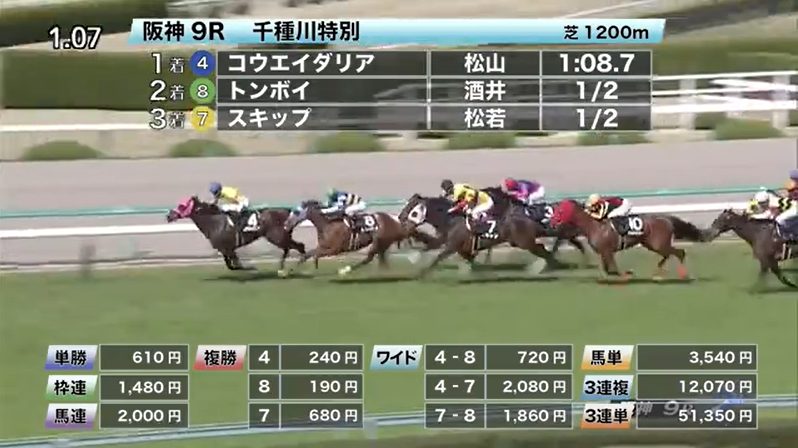 ◎ダノンインパルス(3人気)3着 複勝310円 - 4/4【阪神9R】アザレア賞