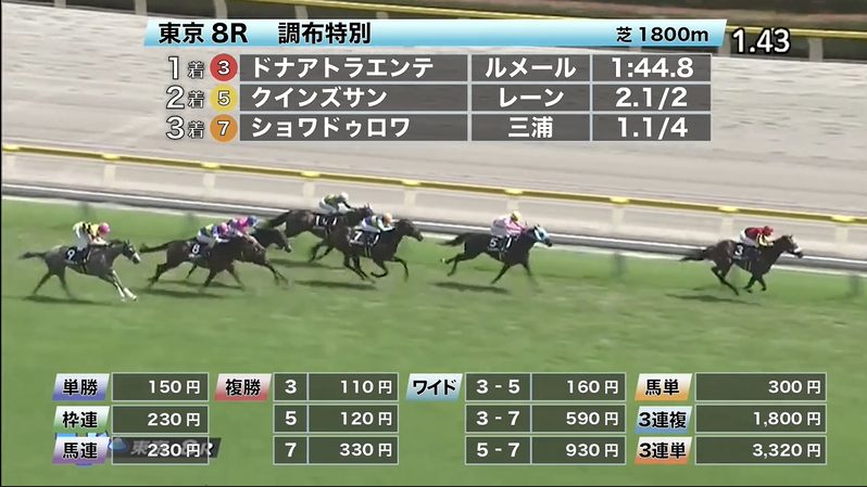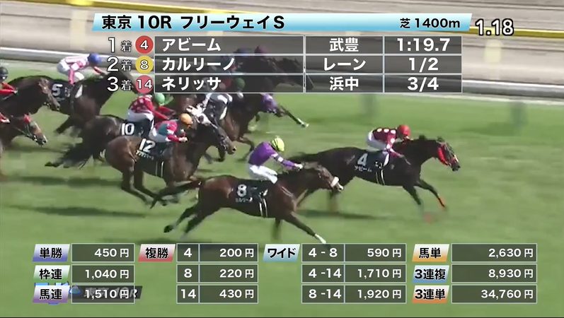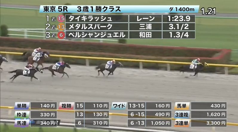 ◎アイスフィヨルド(6人気)1着 単勝1,430円、複勝280円 - 5/17【東京9R】テレ玉杯