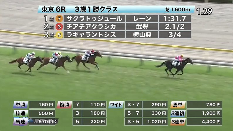 ◎ラクローチェ(7人気)1着 単勝2,330円、複勝440円