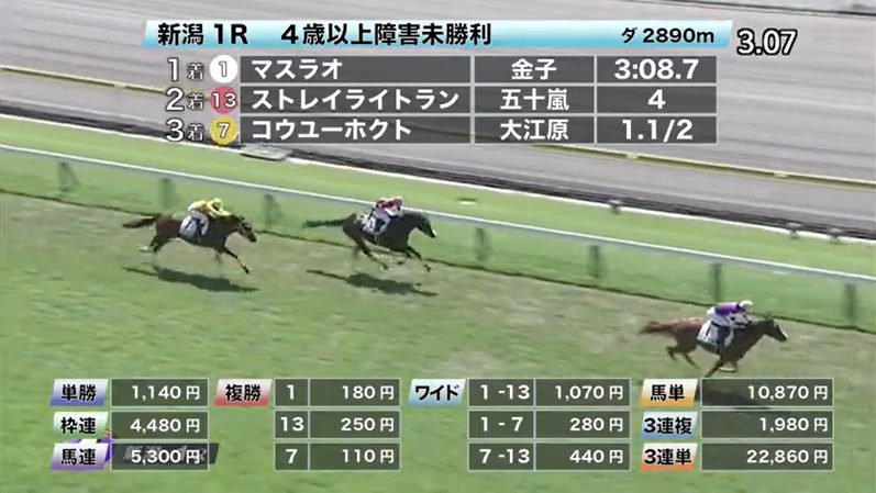 ◎ミッキーブリランテ(9人気)1着 単勝1,670円、複勝550円 - 5/9【新潟1R】4歳以上障害未勝利