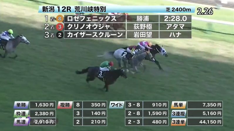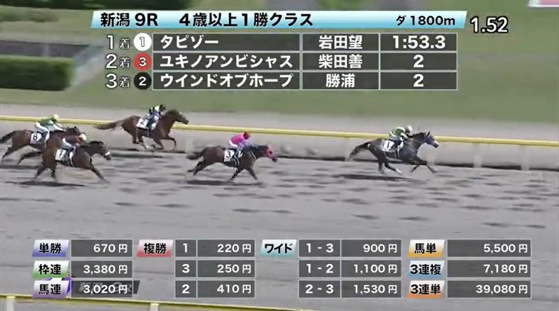 ◎ホウオウトラスト(11人気)2着 複勝1,070円 - 5/24【新潟7R】4歳以上1勝クラス