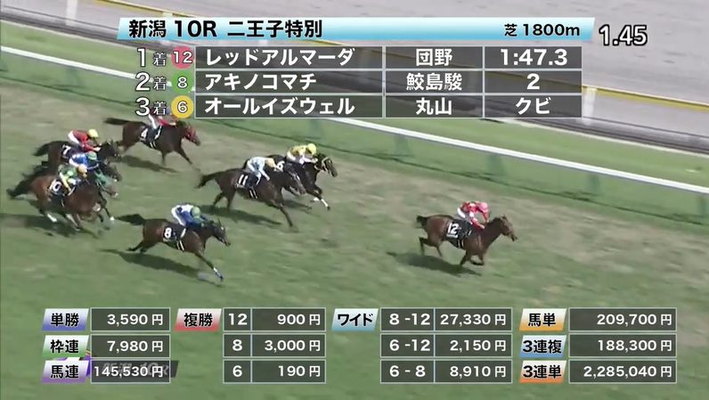 ◎レッドアルマーダ(9人気)1着 単勝3,590円、複勝900円