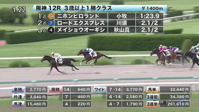 ◎ラセット(6人気)2着 複勝430円 - 7/19【阪神12R】3歳以上1勝クラス