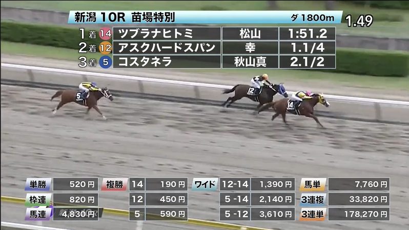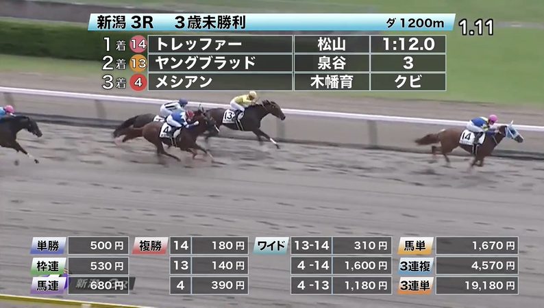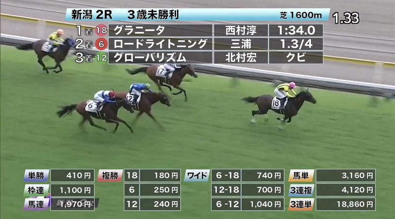 ◎グローバリズム(5人気)3着 複勝240円 - 7/26【新潟3R】3歳未勝利