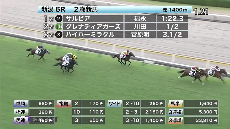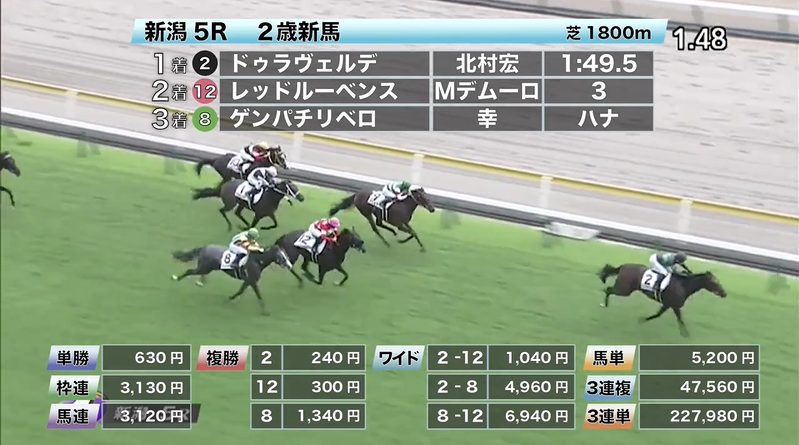 ◎ドゥラヴェルデ(4人気)1着 単勝630円、複勝240円 - 7/26【新潟6R】2歳新馬