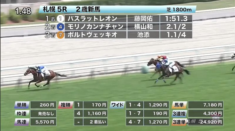 ◎モリノカンナチャン(6人気)2着 複勝1,160円 - 7/26【札幌6R】2歳新馬
