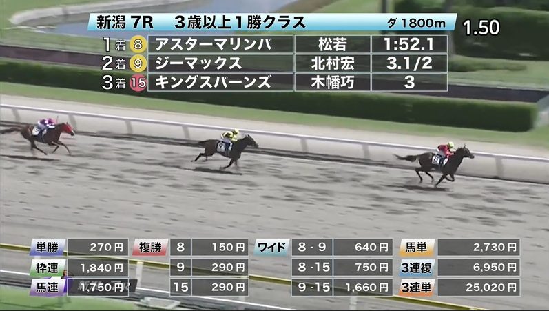 - 8/2【新潟8R】3歳以上1勝クラス