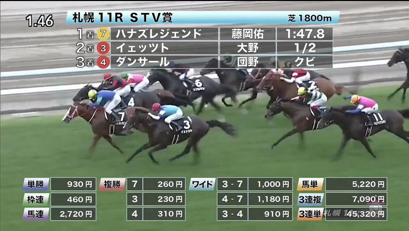 ◎ゴースト(4人気)2着 複勝170円 - 8/1【札幌11R】STV賞