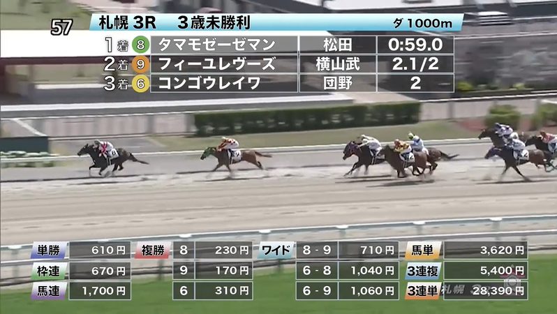 ◎タマモゼーゼマン(4人気)1着 単勝610円、複勝230円 - 8/1【札幌5R】2歳新馬