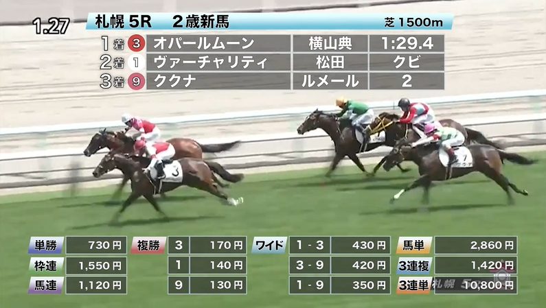◎オパールムーン(4人気)1着 単勝730円、複勝170円 - 8/1【札幌8R】3歳以上2勝クラス
