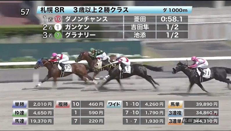 札幌競馬の穴馬的中結果
