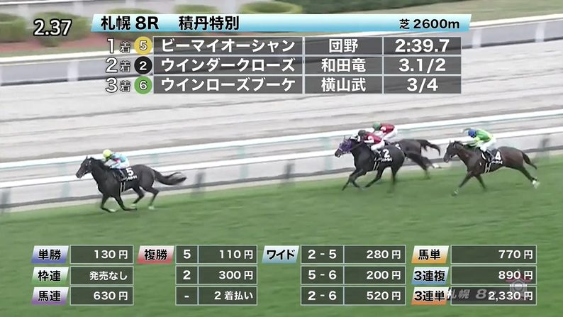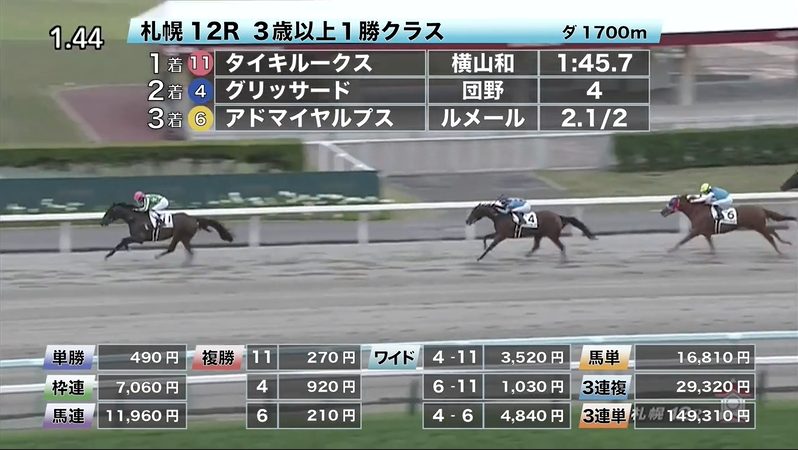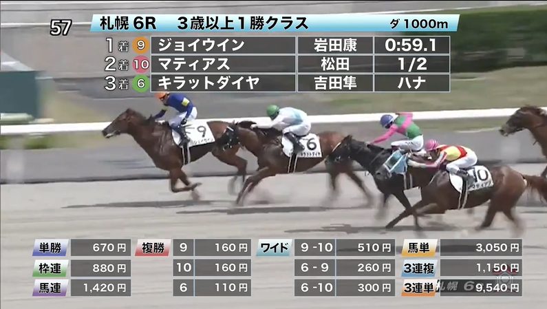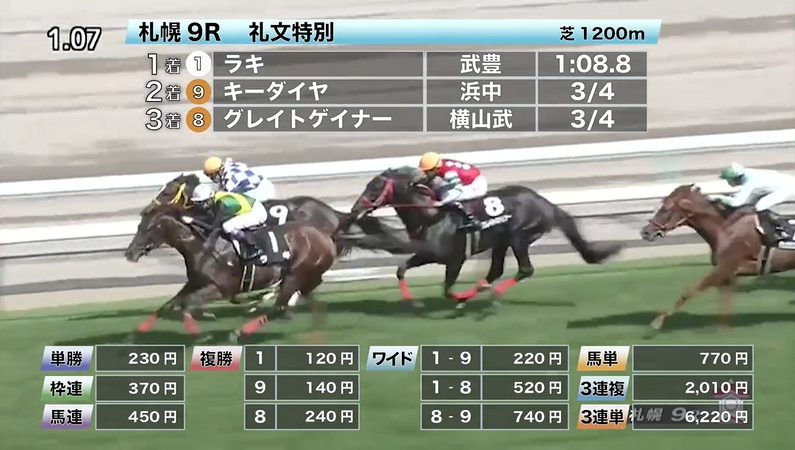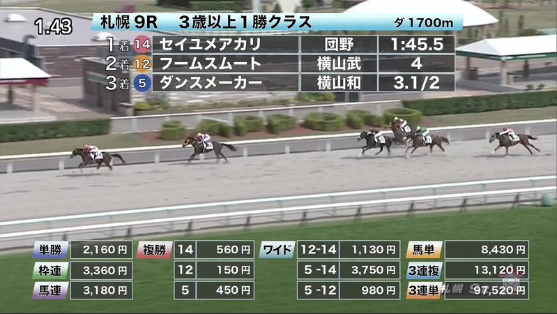 - 8/2【札幌9R】3歳以上1勝クラス