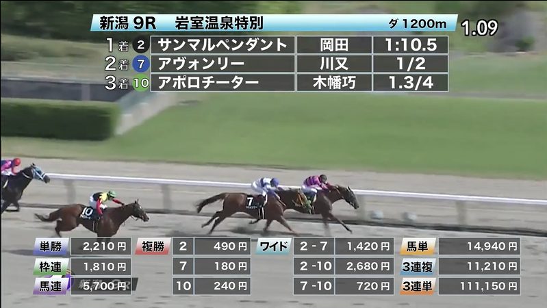 ◎サンマルペンダント(9人気)1着 単勝2,210円、複勝490円