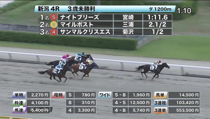 ◎ナイトブリーズ(7人気)1着 単勝2,270円、複勝780円
