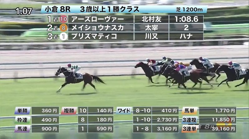 | 8/30 小倉 | 12R | 7R | 58.3% |