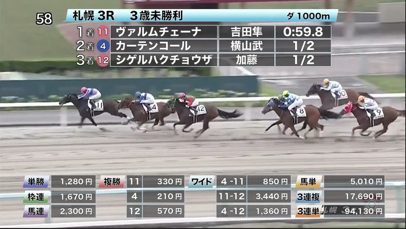 | 8/23 札幌 | 12R | 6R | 50.0% |