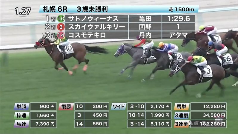 | 8/29 札幌 | 12R | 6R | 50.0% |