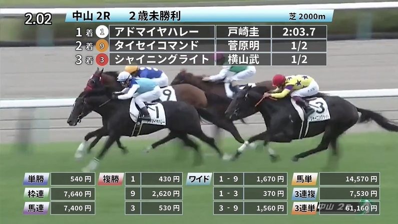 ◎タイセイコマンド(6人気)2着 複勝2,620円 - 9/13【中山3R】2歳新馬