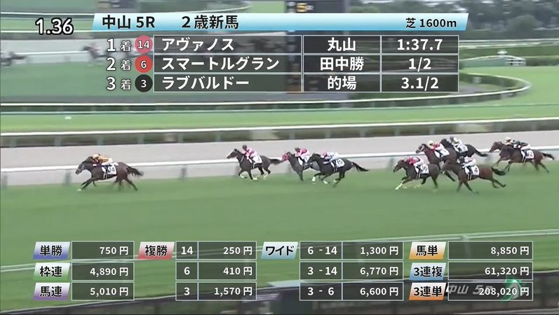 ◎アヴァノス(3人気)1着 単勝750円、複勝250円 - 9/13【中山7R】3歳以上1勝クラス