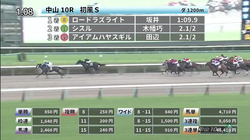 ◎ハローユニコーン(4人気)2着 複勝230円 - 9/13【中山10R】初風ステークス