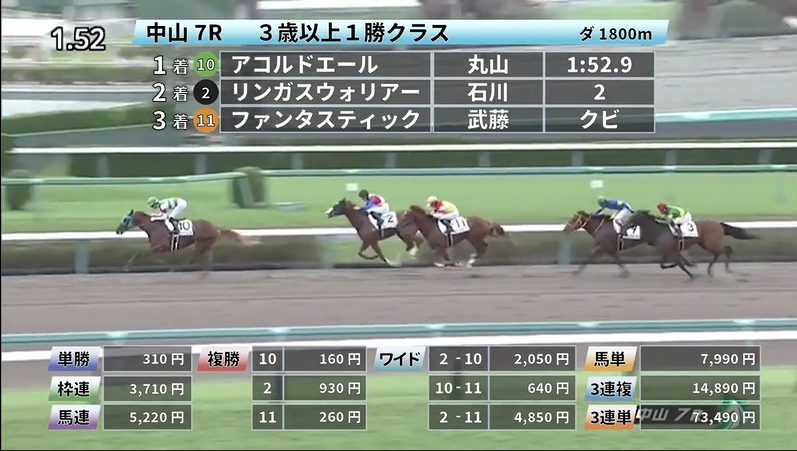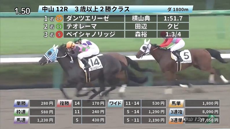 | 9/26 中山 | 12R | 3R | 25.0% |