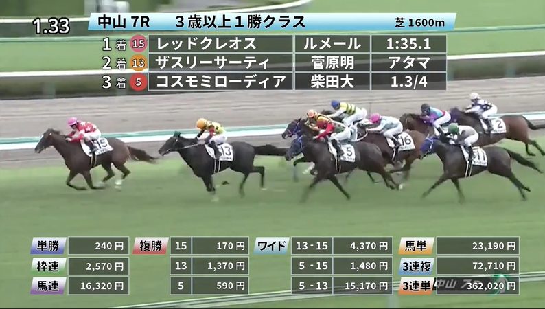 ◎マリオマッハー(5人気)1着 単勝1,200円、複勝300円 - 9/13【中山2R】2歳未勝利