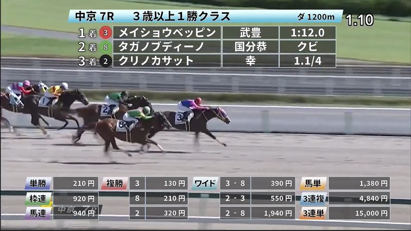 ◎クリアザトラック(10人気)3着 複勝860円 - 9/5【新潟12R】3歳以上1勝クラス