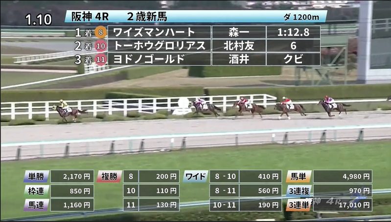 ◎ワイズマンハート(4人気)1着 単勝2,170円、複勝200円