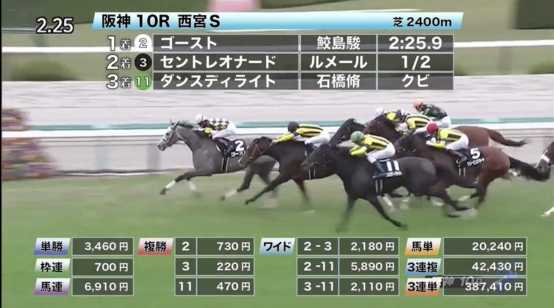 ◎ゴースト(8人気)1着 単勝3,460円、複勝730円
