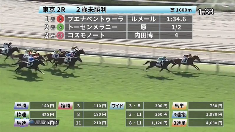 ◎クリノザウルス(4人気)1着 単勝900円、複勝210円 - 10/11【東京4R】2歳新馬