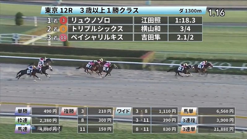 ◎リュウノゾロ(3人気)1着 単勝490円、複勝210円