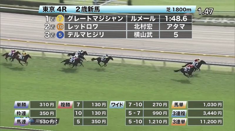◎デルマヒジリ(8人気)3着 複勝350円 - 11/1【東京5R】2歳新馬