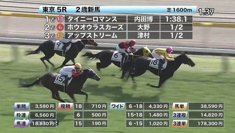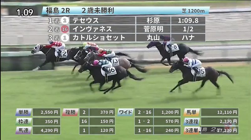 ◎テセウス(7人気)1着 単勝2,550円、複勝370円