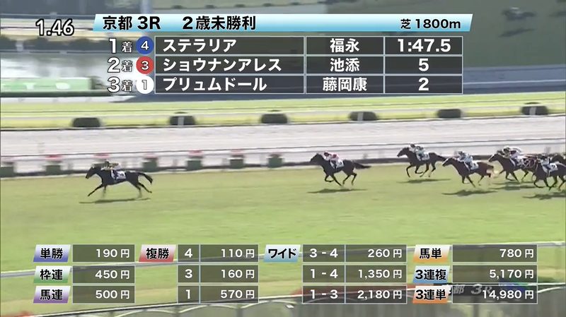 ◎サンライズゴラッソ(5人気)3着 複勝230円 - 10/25【京都6R】3歳以上1勝クラス