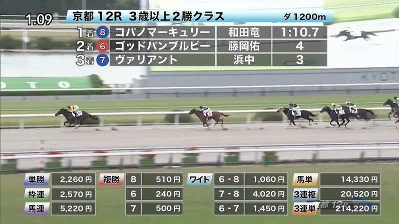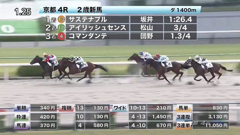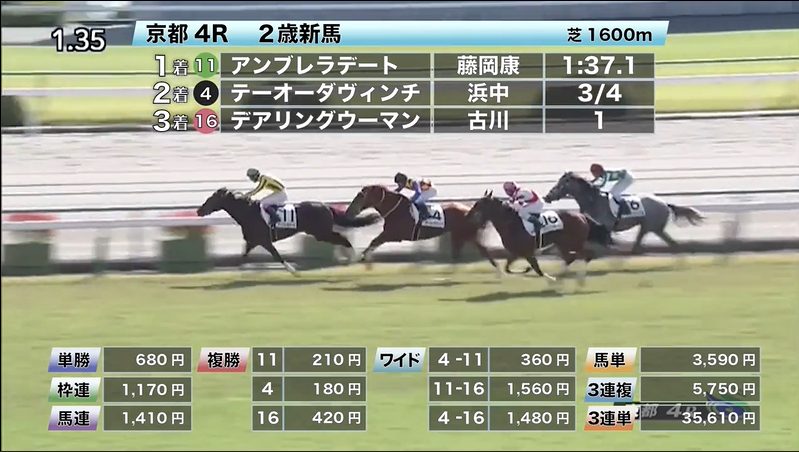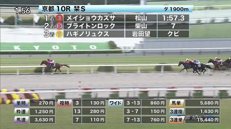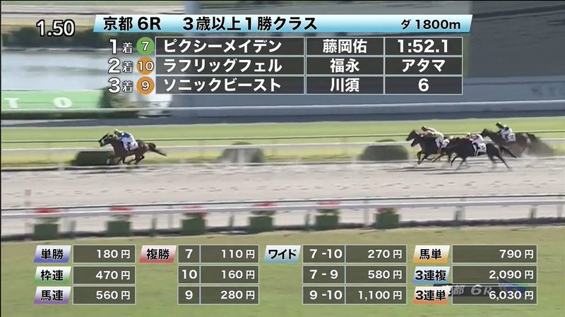 ◎トウケイミラ(4人気)1着 単勝740円、複勝230円 - 10/11【京都7R】3歳以上1勝クラス