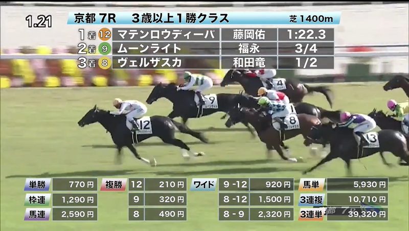 ◎シトラスノキセキ(7人気)1着 単勝1,280円、複勝490円