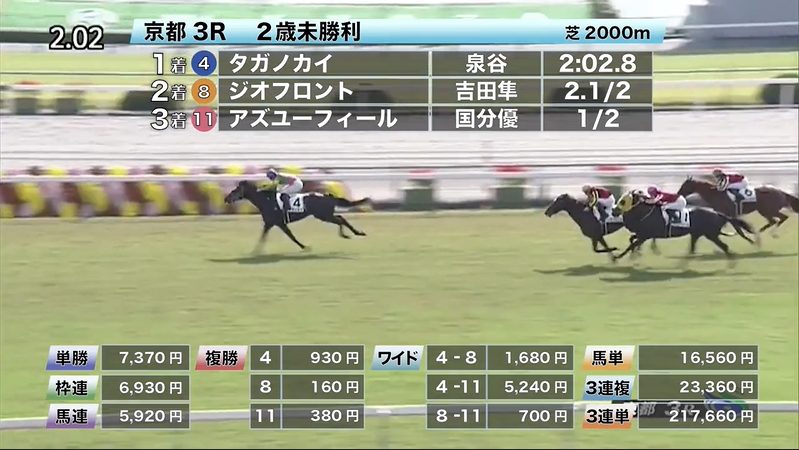 ◎アズユーフィール(8人気)3着 複勝380円 - 11/1【京都4R】2歳新馬