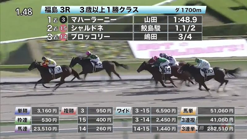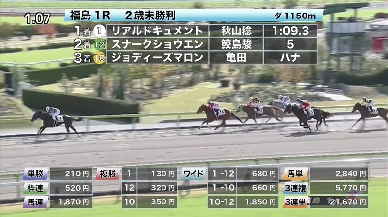 ◎インペリアルツアー(5人気)1着 単勝3,420円、複勝860円 - 10/31【福島3R】3歳以上1勝クラス